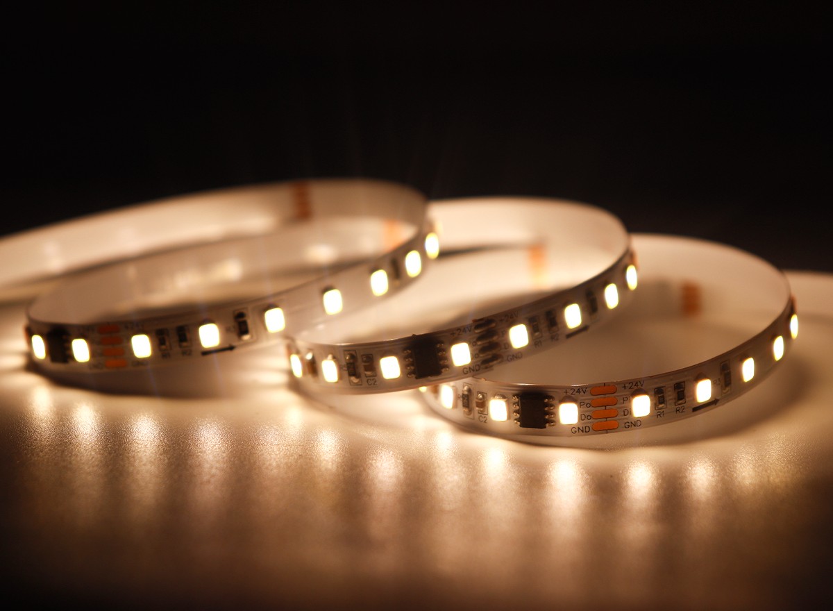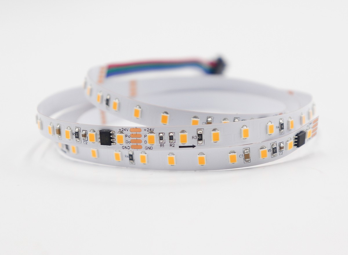 2.LED燈帶供電電壓為24V,過長使用(超過5米)壓降上升,導(dǎo)致尾部供電電壓不足,造成LED亮度不均勻,建議添加電源補(bǔ)電。