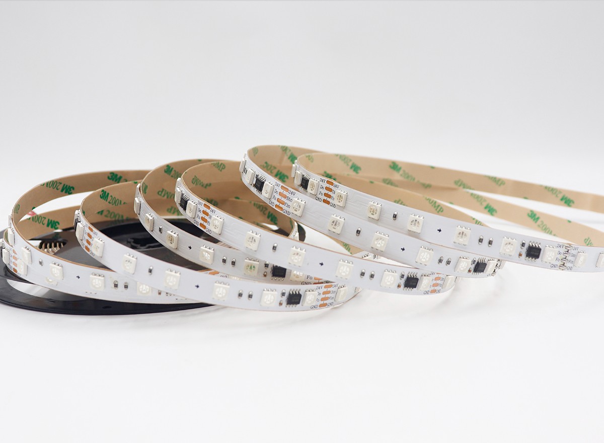 1、控制原理:一個(gè)IC控制3顆LED組成一個(gè)回路(一組),控制器通過控制IC對(duì)FPCB里面的電路進(jìn)行控制,從而控制LED燈條變化不同的效果;如閃爍,追逐,跳變,順時(shí)針跑馬,逆時(shí)針跑馬,單色跑馬,變色跑馬,單顆追逐從頭到尾,流水,模擬閃電等;也可以根據(jù)客戶需要,自行編寫,編寫出所有想要的效果。