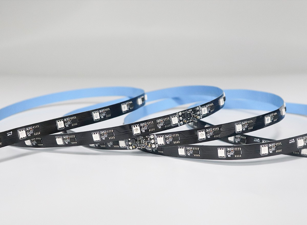 1、控制原理:一個(gè)IC控制一顆LED組成一個(gè)回路(一組),控制器通過(guò)控制IC對(duì)FPCB里面的電路進(jìn)行控制,從而控制LED燈條變化不同的效果;如閃爍,追逐,跳變,順時(shí)針跑馬,逆時(shí)針跑馬,單色跑馬,變色跑馬,單顆追逐從頭到尾,流水,模擬閃電等;也可以根據(jù)客戶需要,自行編寫(xiě),編寫(xiě)出所有想要的效果。