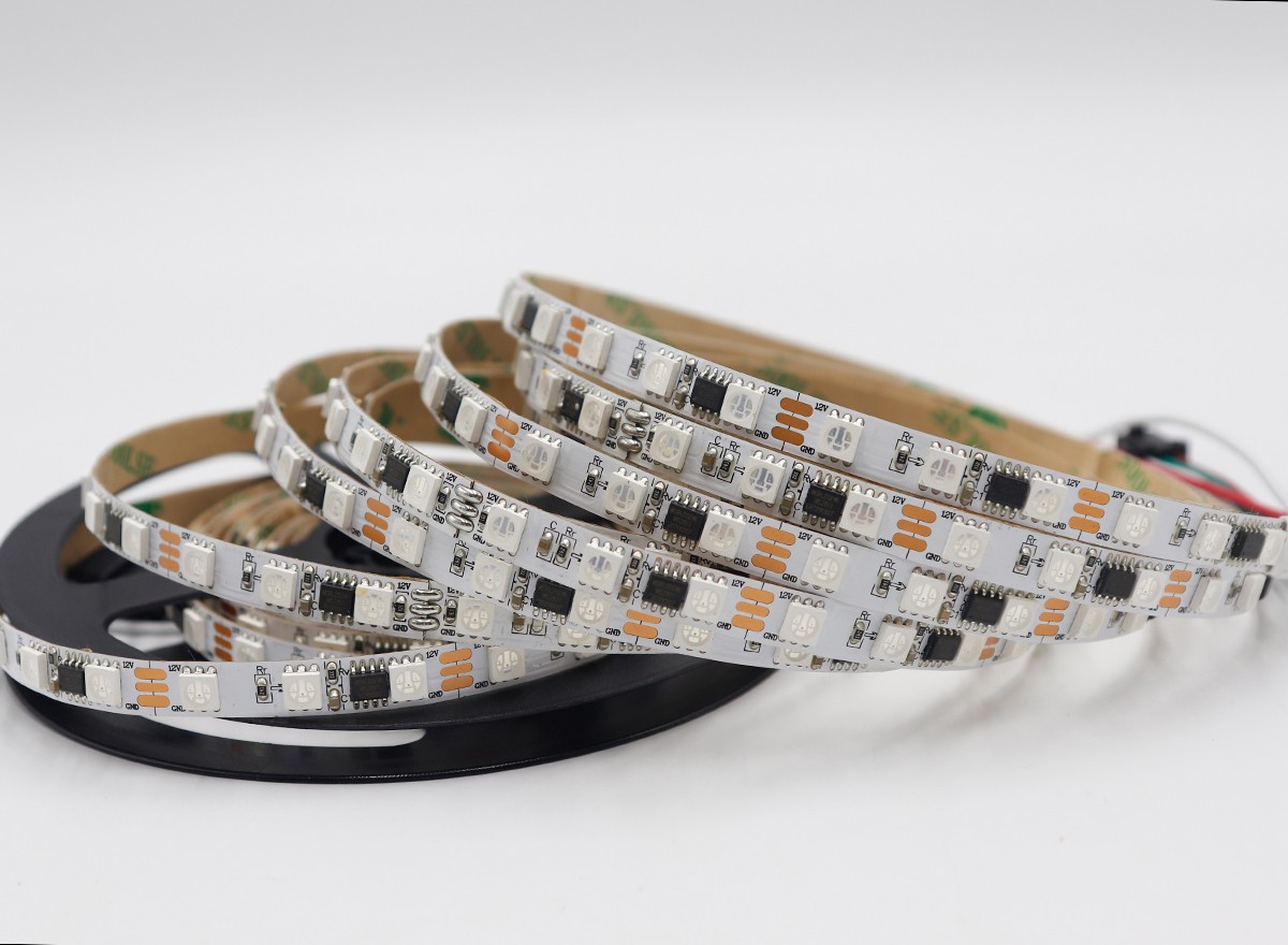 Led燈帶是指把LED組裝在帶狀的FPC(柔性線路板)或PCB硬板上,因其產(chǎn)品形狀象一條帶子一樣而得名。LED全彩燈條又名LED幻彩燈條,LED數(shù)碼燈條,?像素?zé)魲l,?英文名為:LED?pixel?strips,可以實現(xiàn)追逐,流水,幻彩,顯示效果等。因為使用壽命長(一般正常壽命在3~5萬小時),又非常節(jié)能和綠色環(huán)保而逐漸在各種裝飾行業(yè)中嶄露頭角。