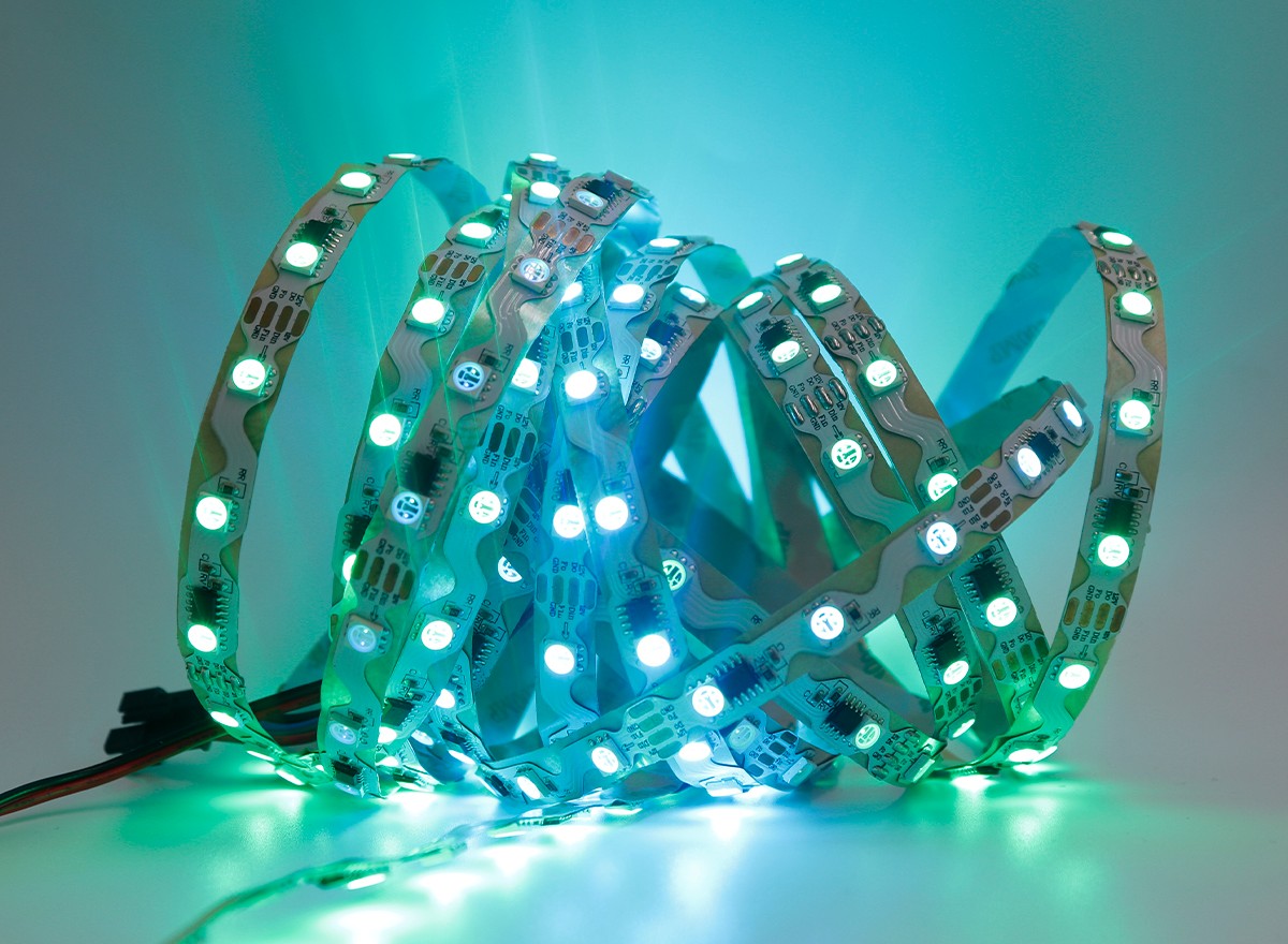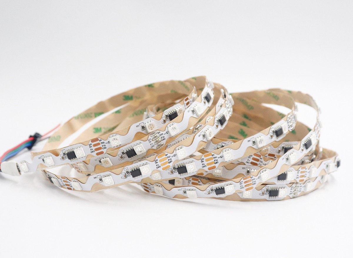 1、控制原理:一個IC控制3顆LED組成一個回路(一組),控制器通過控制IC對FPCB里面的電路進行控制,從而控制LED燈條變化不同的效果;如閃爍,追逐,跳變,順時針跑馬,逆時針跑馬,單色跑馬,變色跑馬,單顆追逐從頭到尾,流水,模擬閃電等;也可以根據客戶需要,自行編寫,編寫出所有想要的效果。