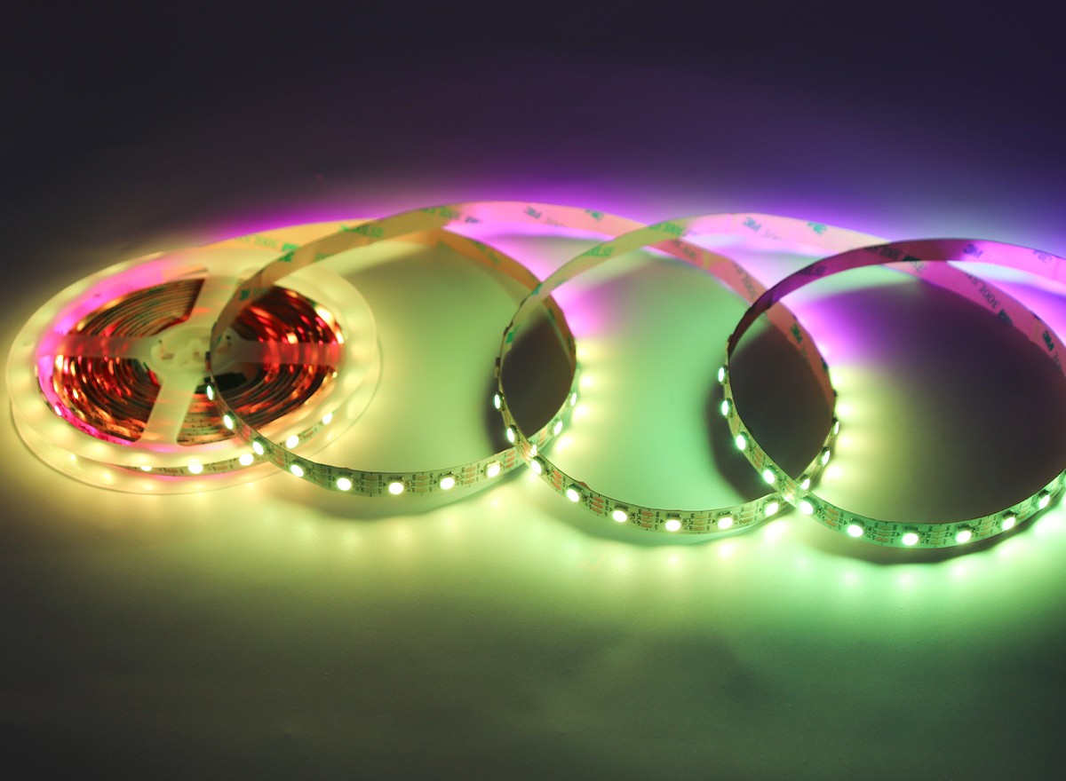 Led燈帶是指把LED組裝在帶狀的FPC(柔性線路板)或PCB硬板上,因其產(chǎn)品形狀象一條帶子一樣而得名。LED全彩燈條又名LED幻彩燈條,LED數(shù)碼燈條,?像素燈條,?英文名為:LED?pixel?strips,可以實現(xiàn)追逐,流水,幻彩,顯示效果等。因為使用壽命長(一般正常壽命在3~5萬小時),又非常節(jié)能和綠色環(huán)保而逐漸在各種裝飾行業(yè)中嶄露頭角。