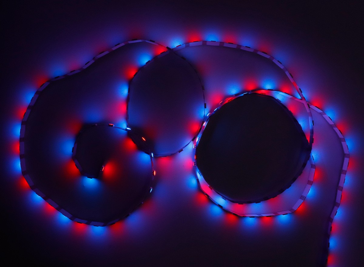1、控制原理:一個(gè)IC控制1顆LED組成一個(gè)回路(一組),控制器通過(guò)控制IC對(duì)FPCB里面的電路進(jìn)行控制,從而控制LED燈條變化不同的效果;如閃爍,追逐,跳變,順時(shí)針跑馬,逆時(shí)針跑馬,單色跑馬,變色跑馬,單顆追逐從頭到尾,流水,模擬閃電等;也可以根據(jù)客戶需要,自行編寫(xiě),編寫(xiě)出所有想要的效果。